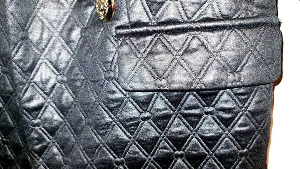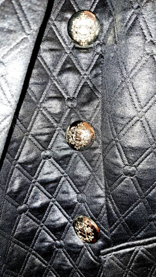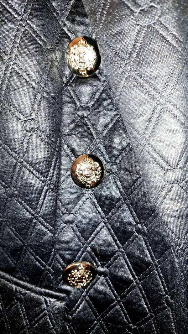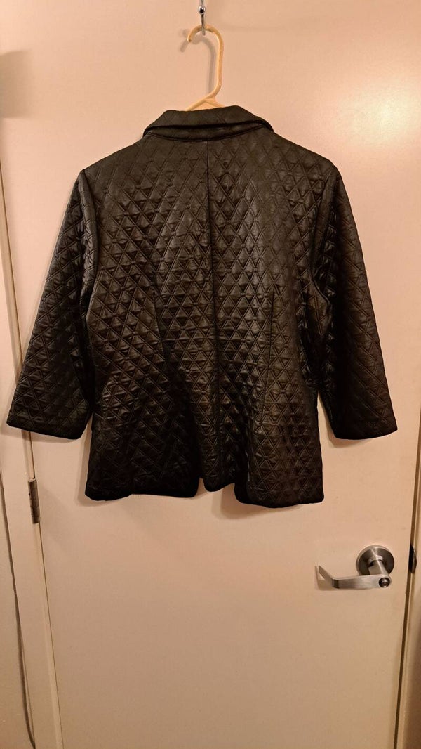 NYCC New York Clothing Company very stylish Black quilted leather jacket with gold crested buttons and faux pockets Large 12-14