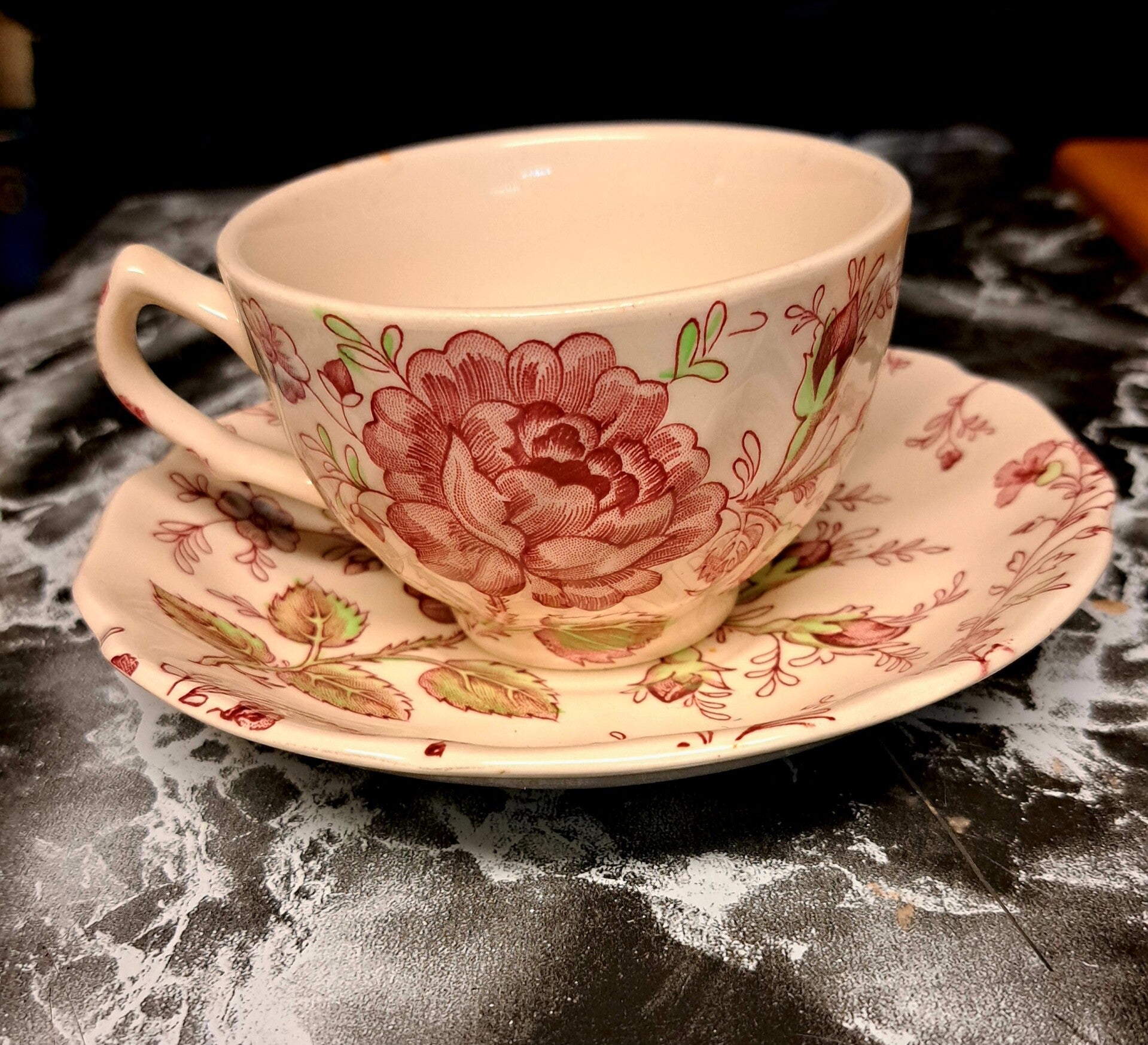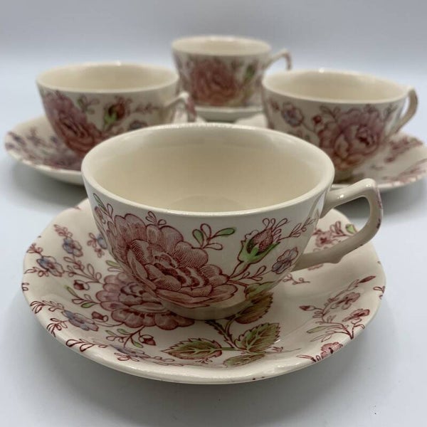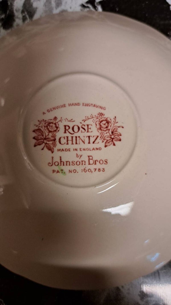 Johnson Brothers Rose Chintz Pink (England 1883" Stamp) Flat Cup 2 3/8" - China Dinnerware & Dishes 2pc Set