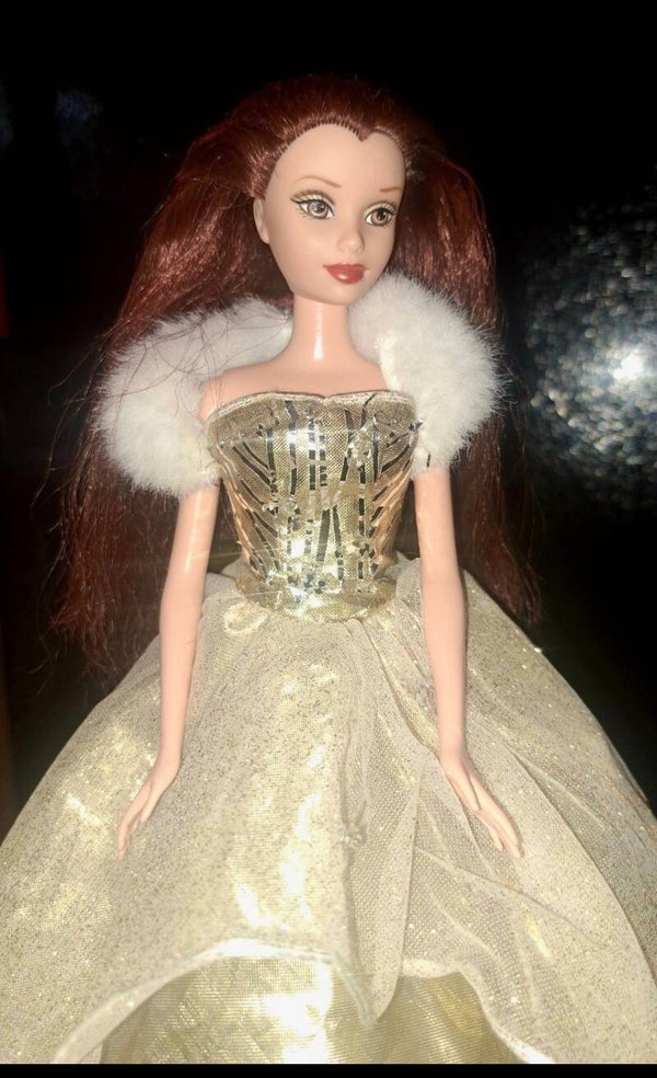 This gorgeous beauty comes with this fabulous dress accentuating her red hair. She is a gem for all collectors' eyes.